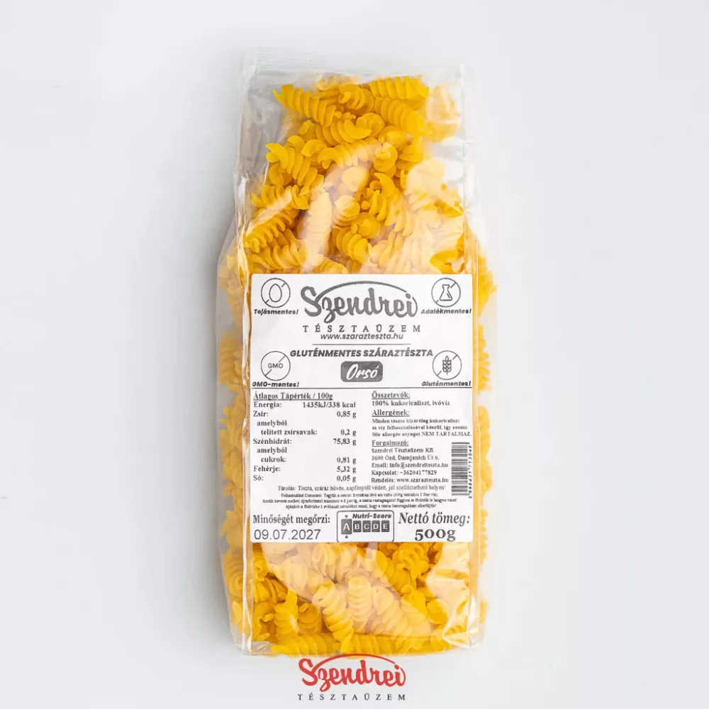 A Szendrei gluténmentes orsó azoknak készült, akik gluténmentes étrend mellett is szeretnének jól használható, házias jellegű száraztésztát tartani otthon. A gluténmentes orsó barázdált, csavart formája jól kapcsolódik a mártásokhoz, így hétköznapi és tartalmasabb tésztaételekhez is beválhat. A kukoricalisztből készült tészta természetes, kellemes ízvilágú alapanyag, amely egyszerű hétköznapi ételekhez és gondosabban összeállított fogásokhoz is bevethető.